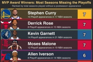库里生涯第7次无缘季后赛 并列前MVP球员历史第一